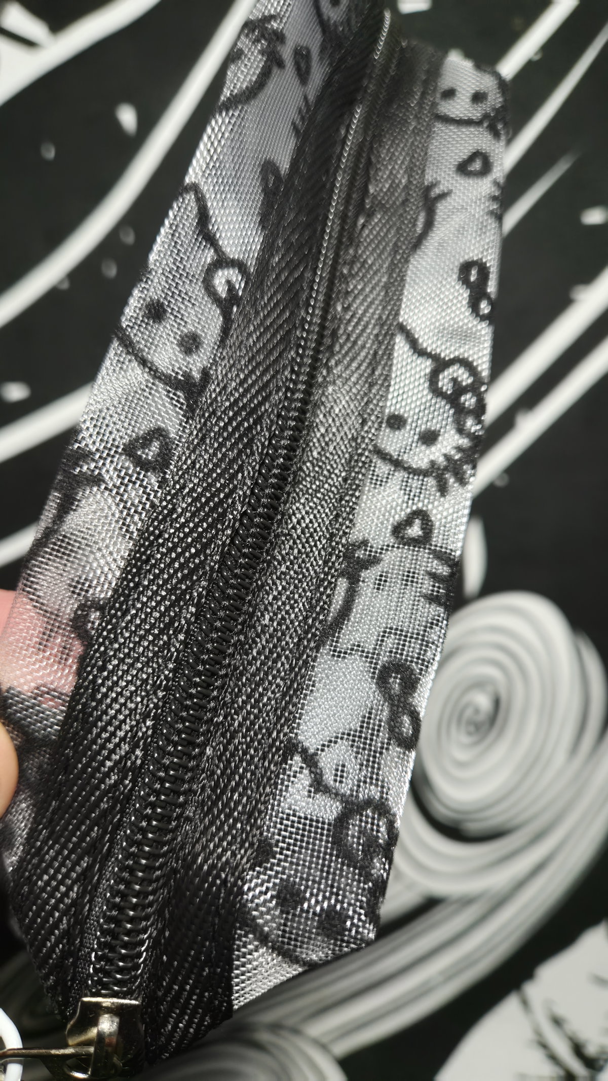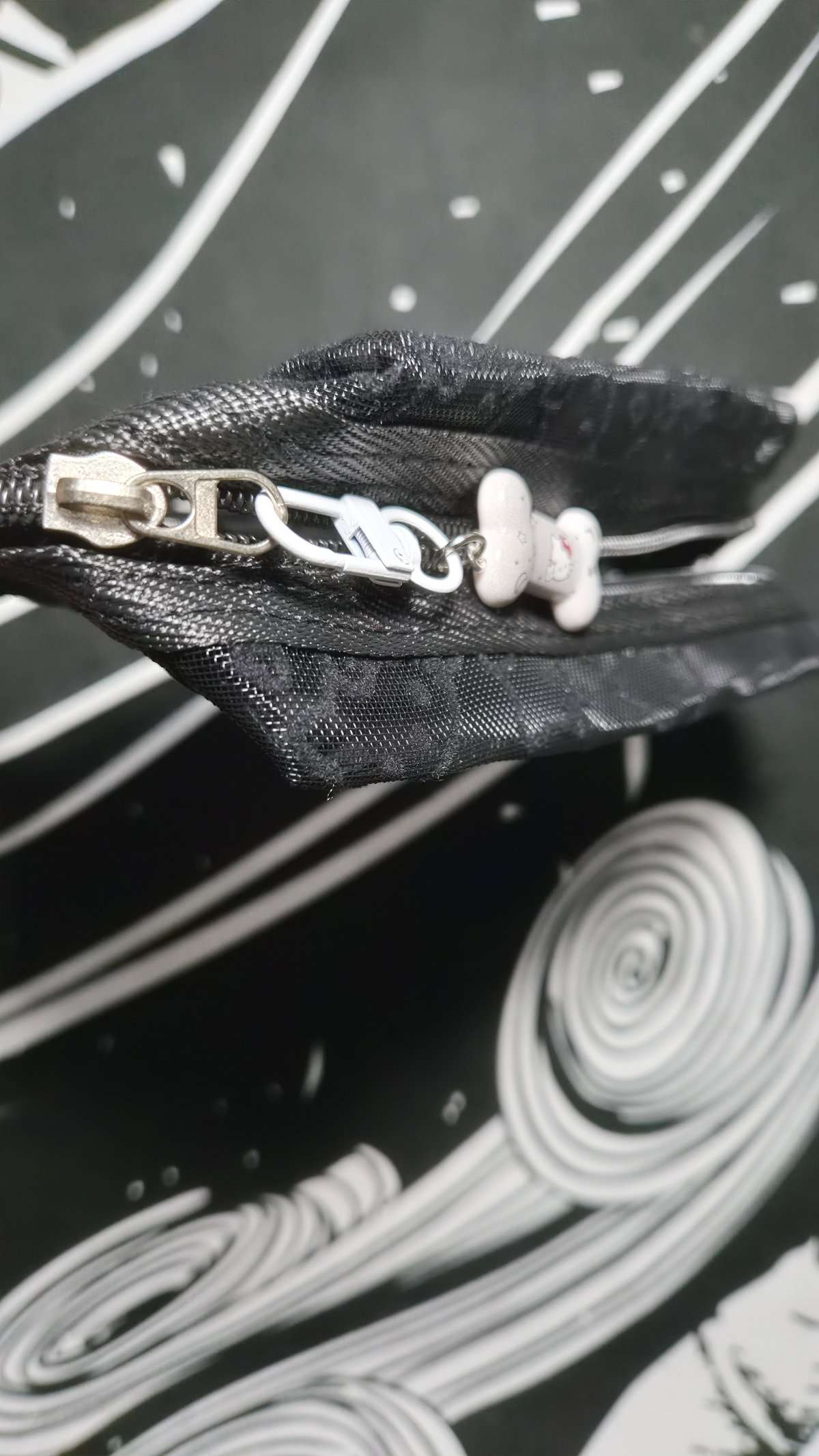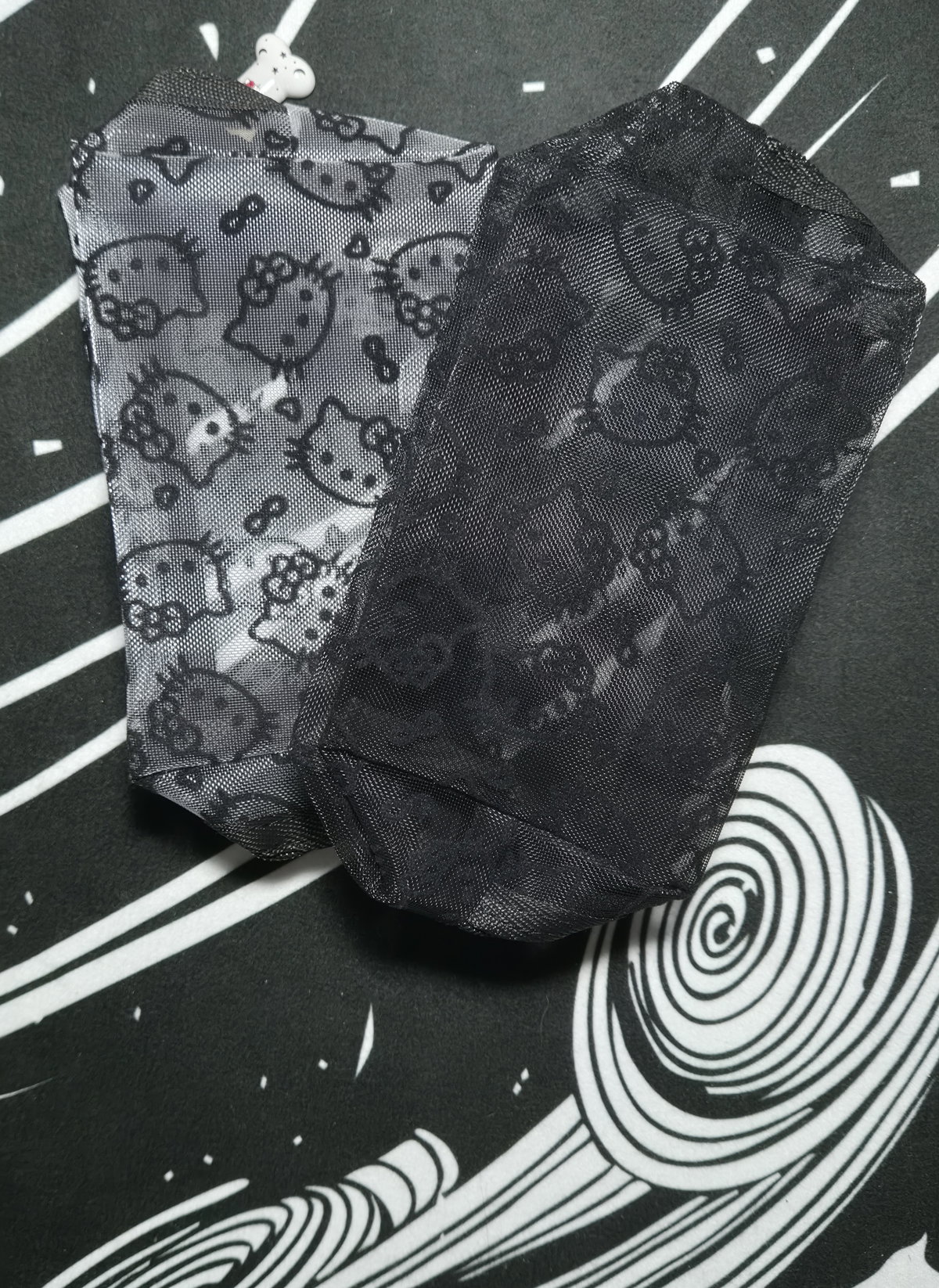 Cartuchera "HELLO KITTY" Tejido de red (Blanco/Negro)